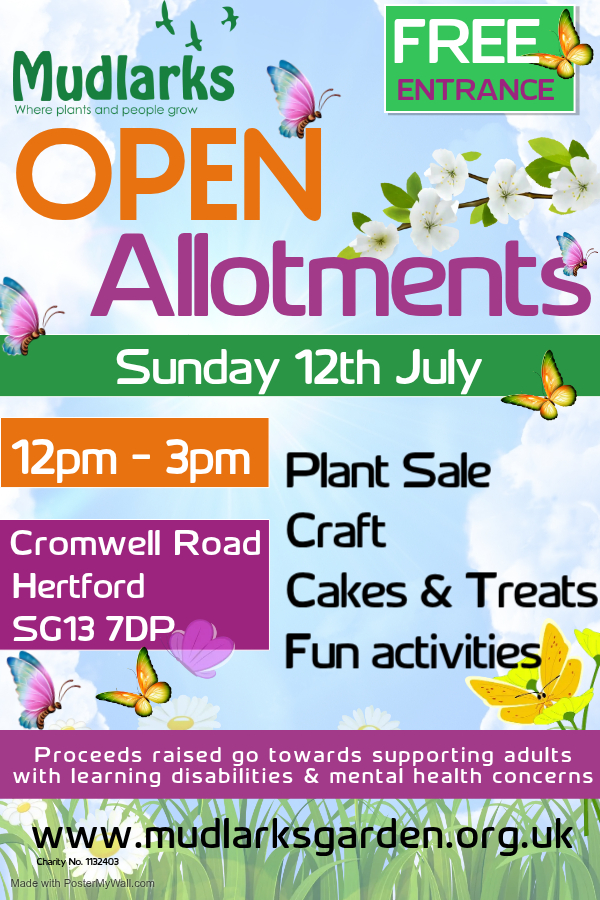 Our Open Allotments are dedicated to raising funds for Mudlarks supporting adults with learning disabilities and mental health issues.