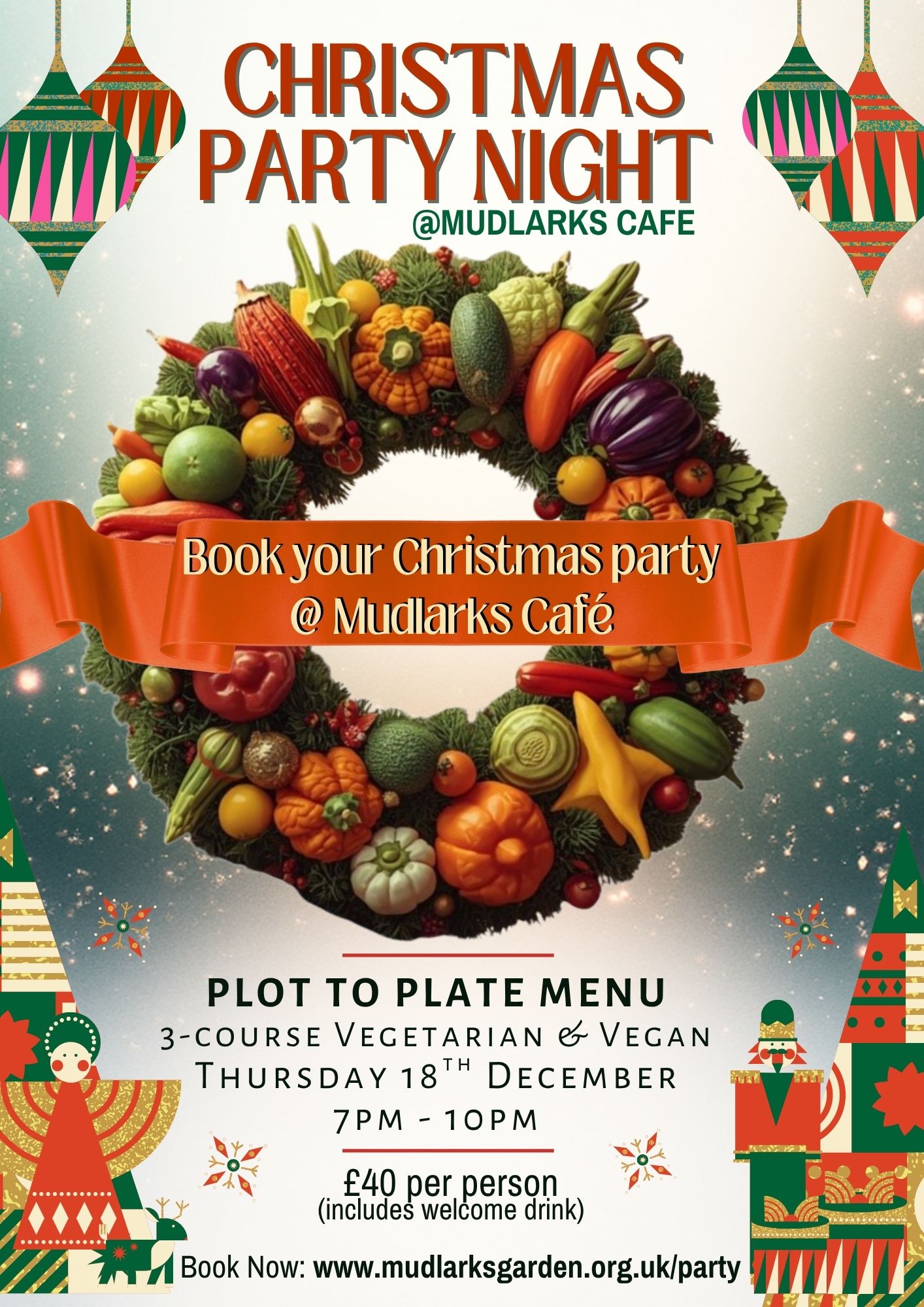 Join us for a festive feast of mouth-watering vegetarian and vegan dishes, all lovingly created from our plot-to-plate menu. Expect delicious food, great vibes, and plenty of festive cheer – the perfect recipe for an unforgettable night!